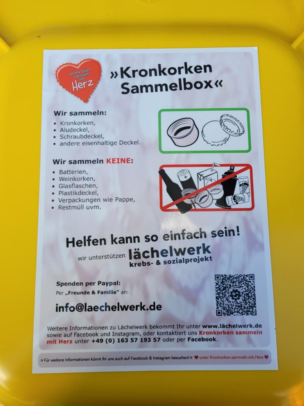 Auch bei uns gibt es jetzt eine Sammelstelle von „Kronkorken sammeln mit Herz“! Sie finden sie am Parkplatz beim Sturmiushaus.